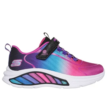 Ragyogj a stílusos Skechers Rainbow Cruisers színeiben. Ez a világítós modell színátmenetes szőtt felsőrésszel, rugalmas fűzőkkel, lábfejpánttal és be-/kikapcsoló gombbal készült. Felső része: textil Belső része: textil Rögzítés módja: tépőzár Szín: rózsaszín, fekete, lila, kék